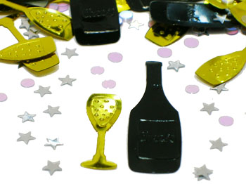 Deluxe Celebration Confetti Z9305 - Metallic Champagne and Tophat Confetti Mix . Silver and Gold Metallic Confetti. Packets are 1/2 ounce. Also Available by the Pound