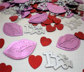 I Love You Confetti, Z7843 - "I Love You" Word Confetti. Metallic Red Confetti Packets are 1/2 ounce. Love Confetti is also available by the pound
